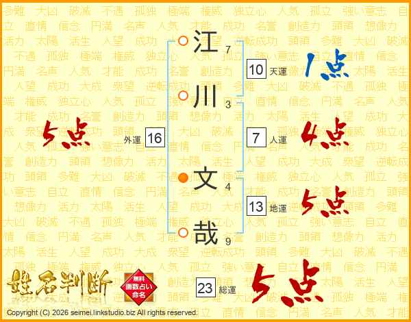 江川文哉さんの総運は23画の5点!