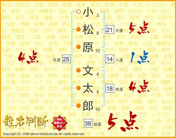 小松原文太郎さんの総運は39画の5点!