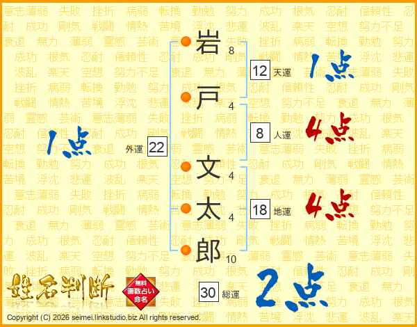 岩戸文太郎さんの総運は30画の2点!