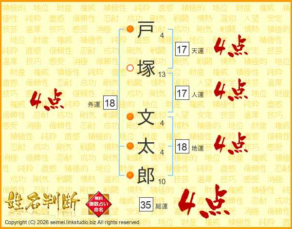 戸塚文太郎さんの天運は17画の4点!