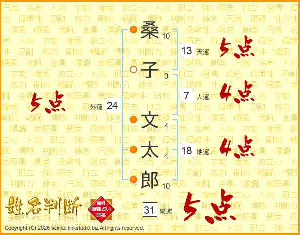 桑子文太郎さんの総運は31画の5点!