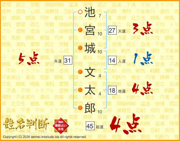 池宮城文太郎さんの総運は45画の4点!