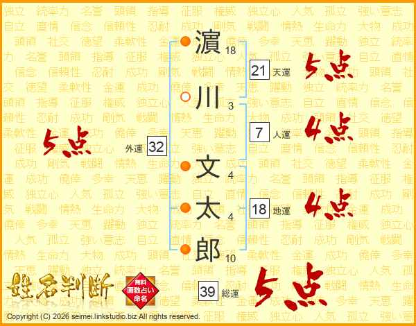 濵川文太郎さんの総運は39画の5点!