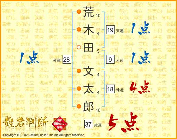荒(10画)木(4画)田(5画) 文(4画)太(4画)郎(10画)