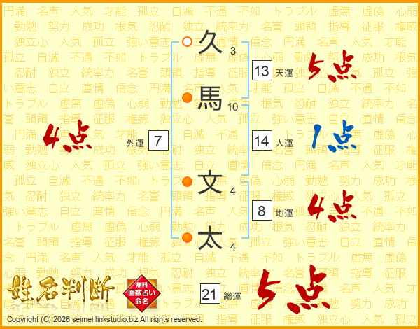 久馬文太さんの総運は21画の5点!
