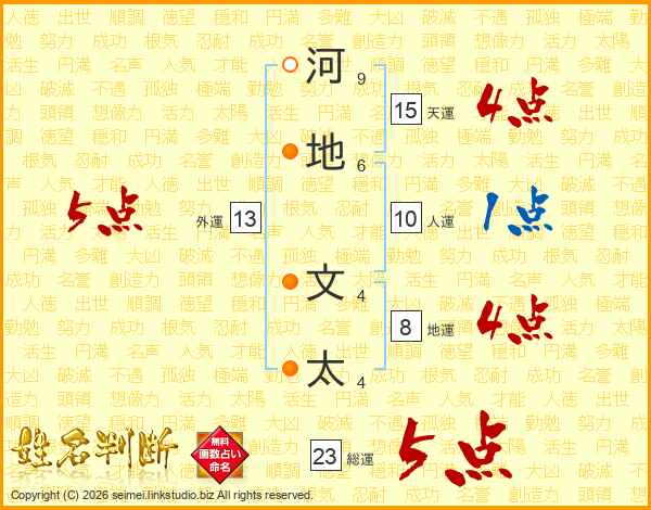 河地文太さんの総運は23画の5点!
