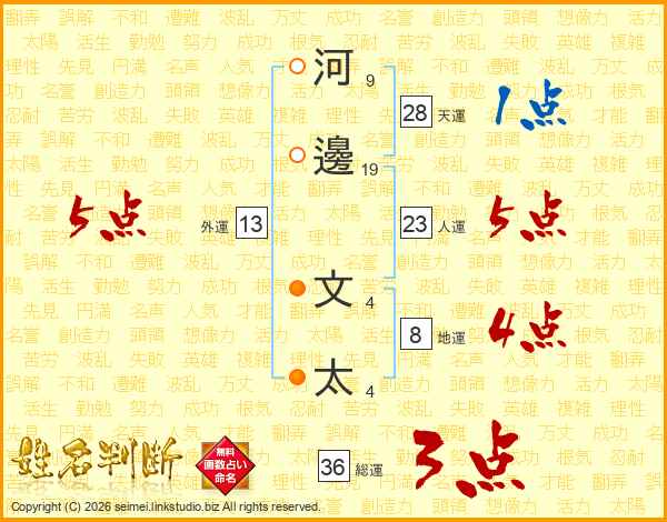 河邊文太さんの人運は23画の5点!