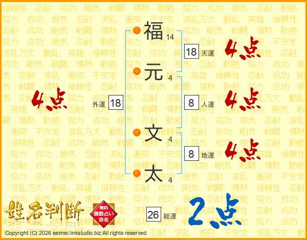 福元文太さんの総運は26画の2点!