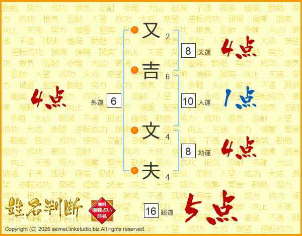 又吉文夫さんの総運は16画の5点!