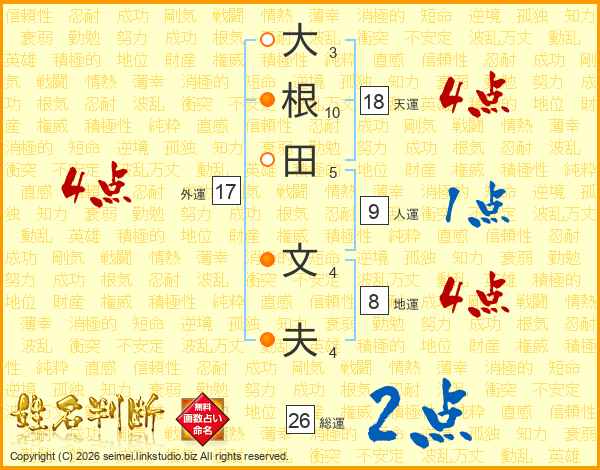大根田文夫さんの天運は18画の4点!