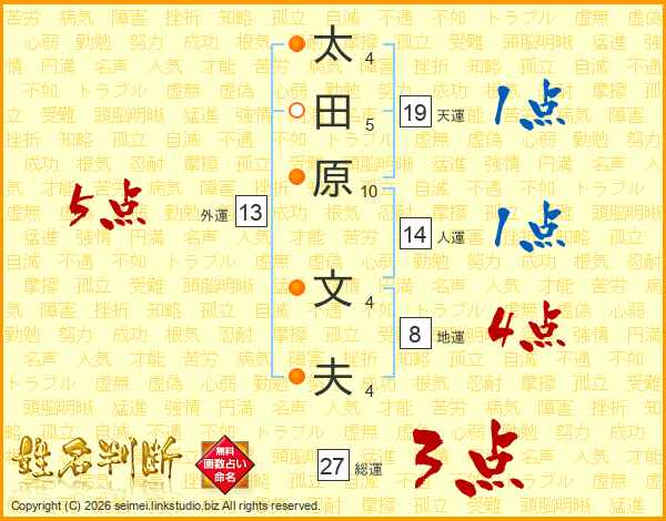 太田原文夫さんの外運は13画の5点!