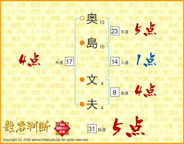 奥(13画)島(10画) 文(4画)夫(4画)