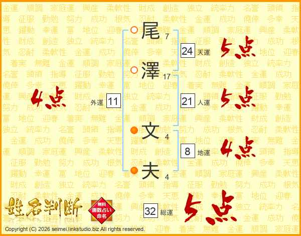 尾澤文夫さんの総運は32画の5点!