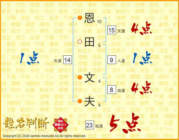 恩田文夫さんの総運は23画の5点!