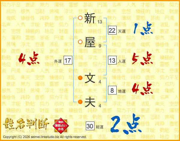 新屋文夫さんの人運は13画の5点!