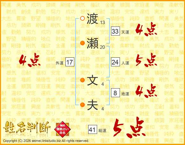渡瀬文夫さんの天運は33画の4点!