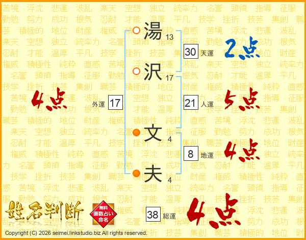 湯沢文夫さんの総運は38画の4点!