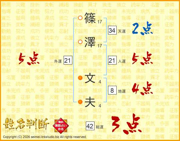 篠(17画)澤(17画) 文(4画)夫(4画)