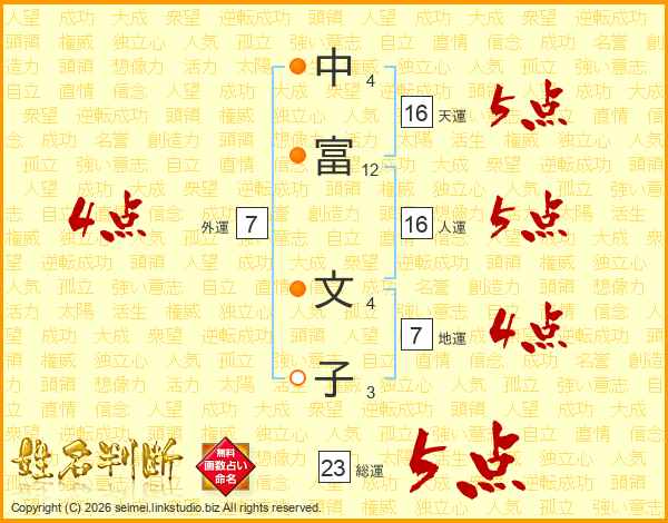 中富文子さんの天運は16画の5点!