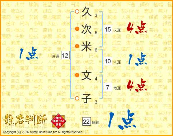 久(3画)次(6画)米(6画) 文(4画)子(3画)