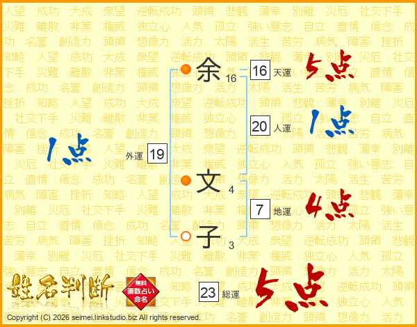 余(16画) 文(4画)子(3画)