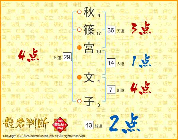 秋(9画)篠(17画)宮(10画) 文(4画)子(3画)