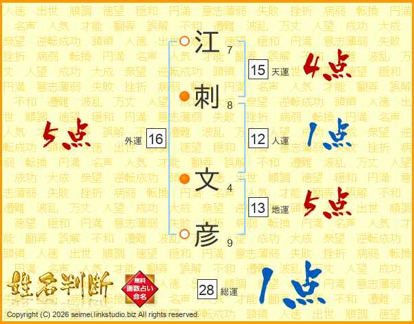江刺文彦さんの天運は15画の4点!