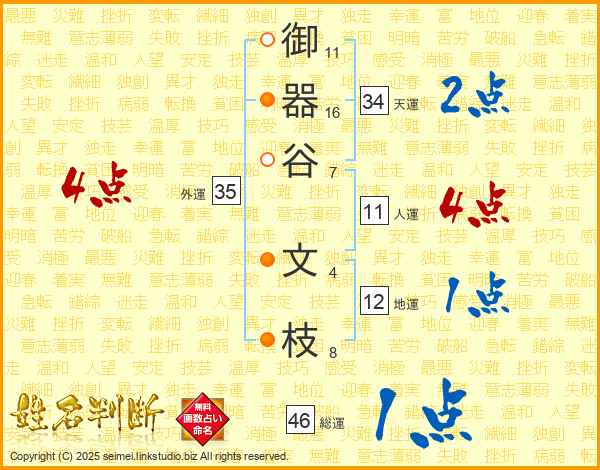 御器谷文枝さんの人運は11画の4点!