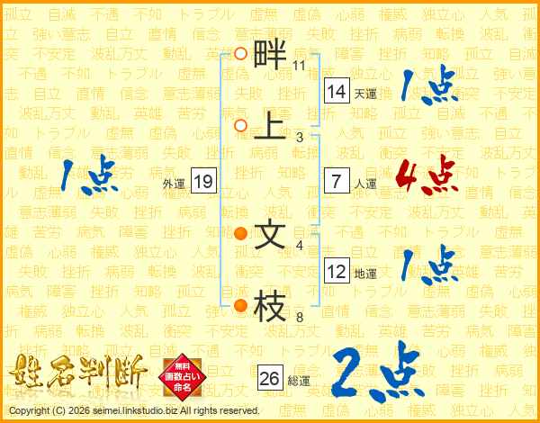 畔上文枝さんの天運は14画の1点!