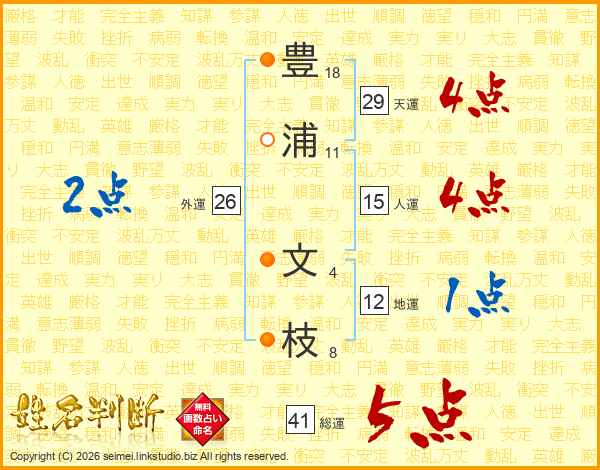 豊(18画)浦(11画) 文(4画)枝(8画)