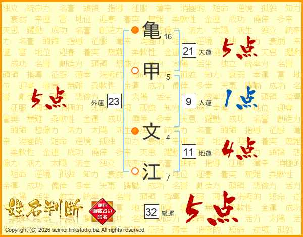 亀甲文江さんの総運は32画の5点!