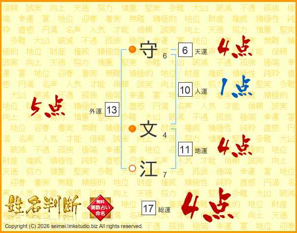 守文江さんの総運は17画の4点!