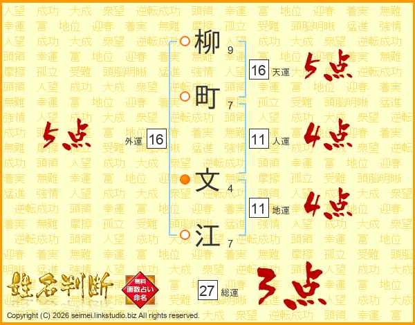 柳町文江さんの天運は16画の5点!