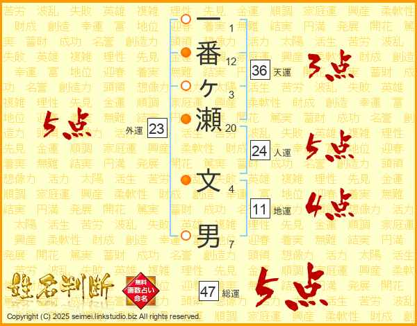 一番ヶ瀬文男さんの総運は47画の5点!