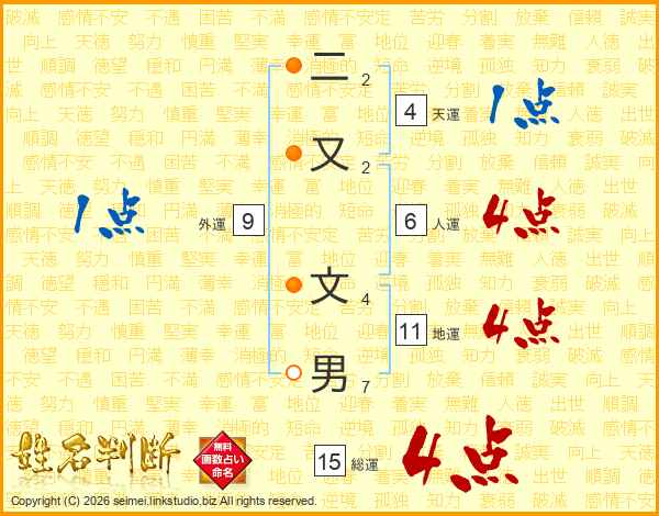 二又文男さんの総運は15画の4点!