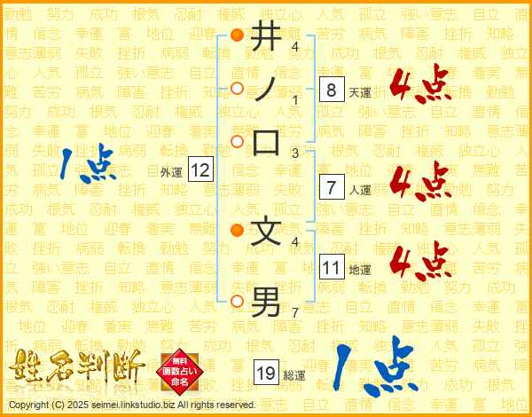 井(4画)ノ(1画)口(3画) 文(4画)男(7画)