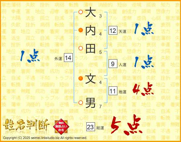 大(3画)内(4画)田(5画) 文(4画)男(7画)