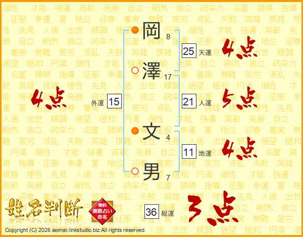 岡澤文男さんの人運は21画の5点!