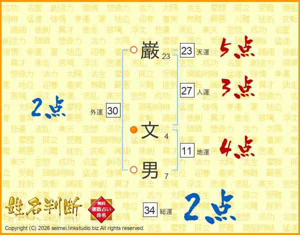 巌(23画) 文(4画)男(7画)