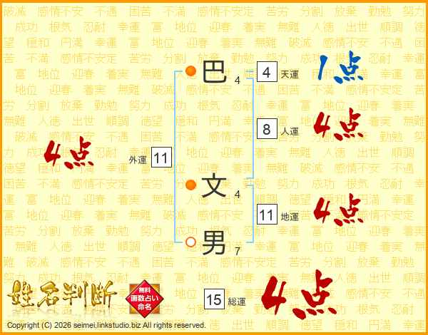 巴文男さんの総運は15画の4点!