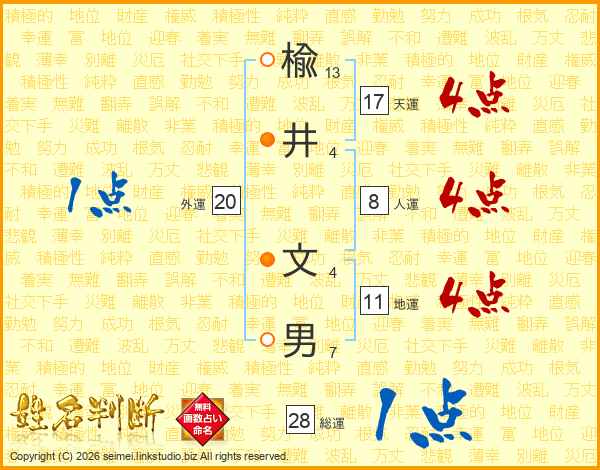 楡井文男さんの天運は17画の4点!