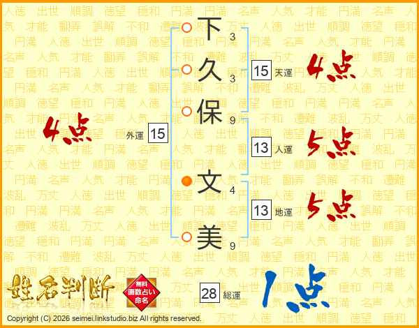 下久保文美さんの総運は28画の1点!