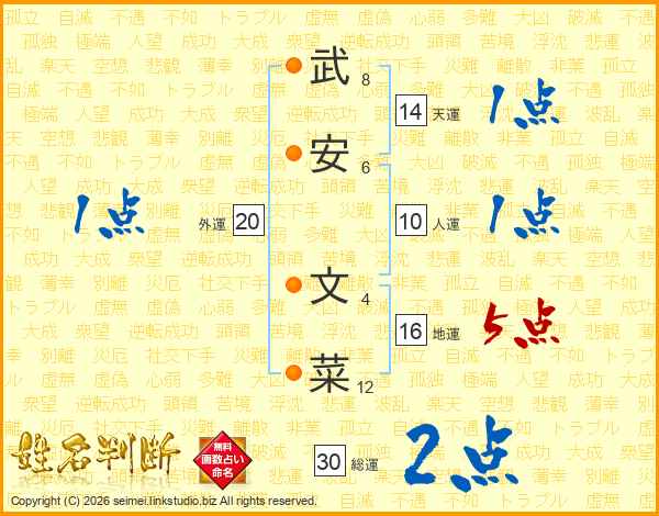 武安文菜さんの総運は30画の2点!