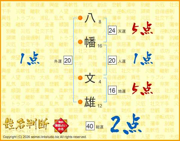 八幡文雄さんの天運は24画の5点!