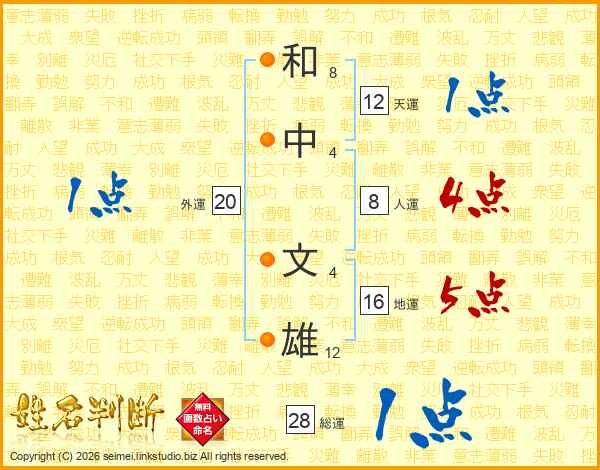 和中文雄さんの天運は12画の1点!
