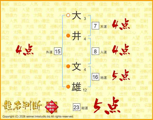 大井文雄さんの天運は7画の4点!