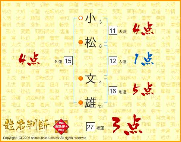 小松文雄さんの天運は11画の4点!