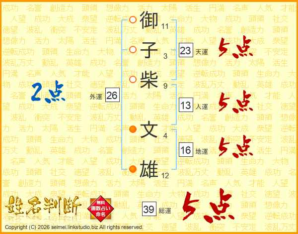 御子柴文雄さんの総運は39画の5点!