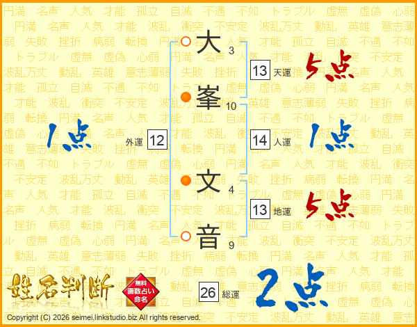 大峯文音さんの総運は26画の2点!