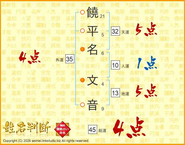 饒平名文音さんの総運は45画の4点!